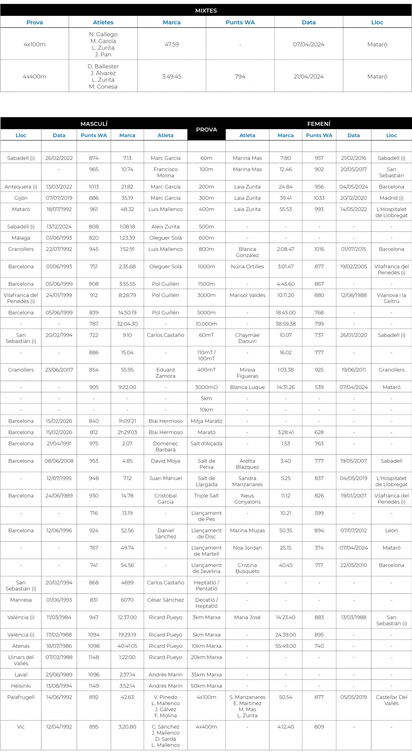 Consulta la taula de càlcul de Punts WA: World Athletics scoring tables
