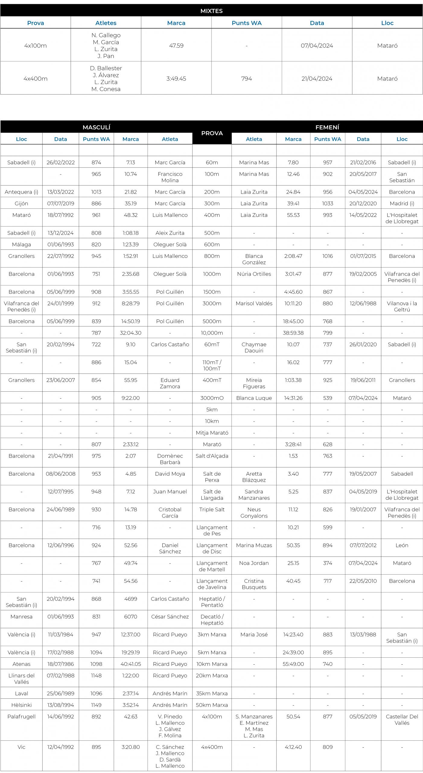 Consulta la taula de càlcul de Punts WA: World Athletics scoring tables
